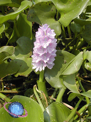 Water hyacinths bear lilac, hyacinth-like flowers, hence the name for this aquatic plant.