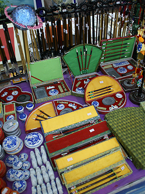 Chinese inkstones, flat stone mortars used for grinding ink sticks (fig.), as well as for holding the obtained ink.
